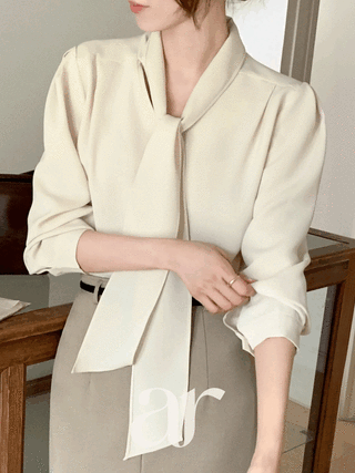 (デート・お呼ばれ・フェミニンムード♥)ブイネック タイ 長袖 ブラウス