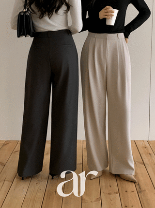 (春カラー追加/脚長+3cm見え/下半身カバー/着回し万能)ハイウエスト ワイドタック スラックス